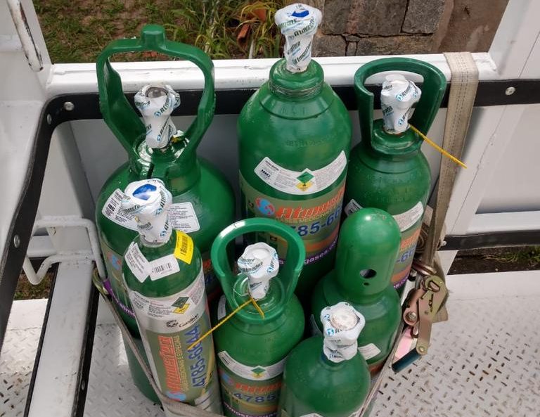 Ao todo, 24 cilindros de oxigênio e uma máquina de embalar medicamentos foram encaminhadas para hospitais estaduais