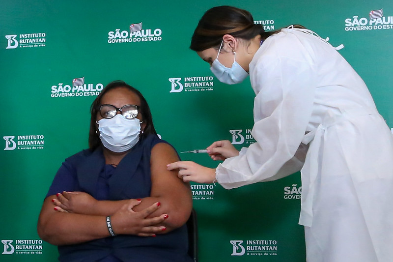 Primeira brasileira a ser vacinada em 17 de janeiro, enfermeira Mônica Calazans recebeu segunda dose nesta sexta-feira (12)