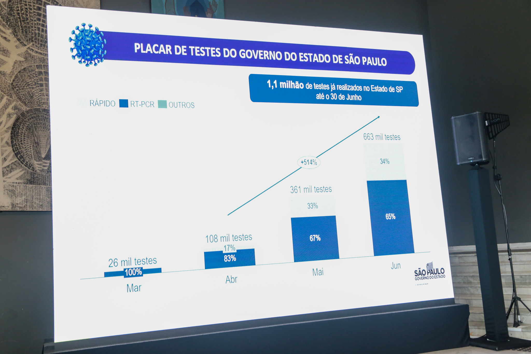 Nos últimos dois meses, balanço cresceu 500% e proporção de testagem a cada 100 mil habitantes no estado se aproxima à da Alemanha