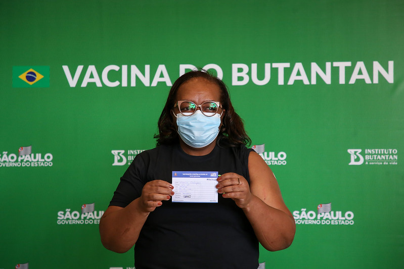 Enfermeira Mônica Calazans foi recebida no Palácio dos Bandeirantes para aplicação adicional da vacina do Butantan